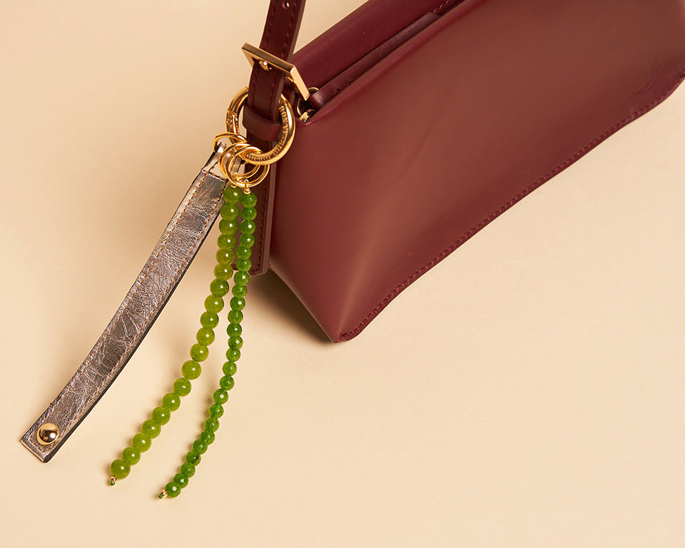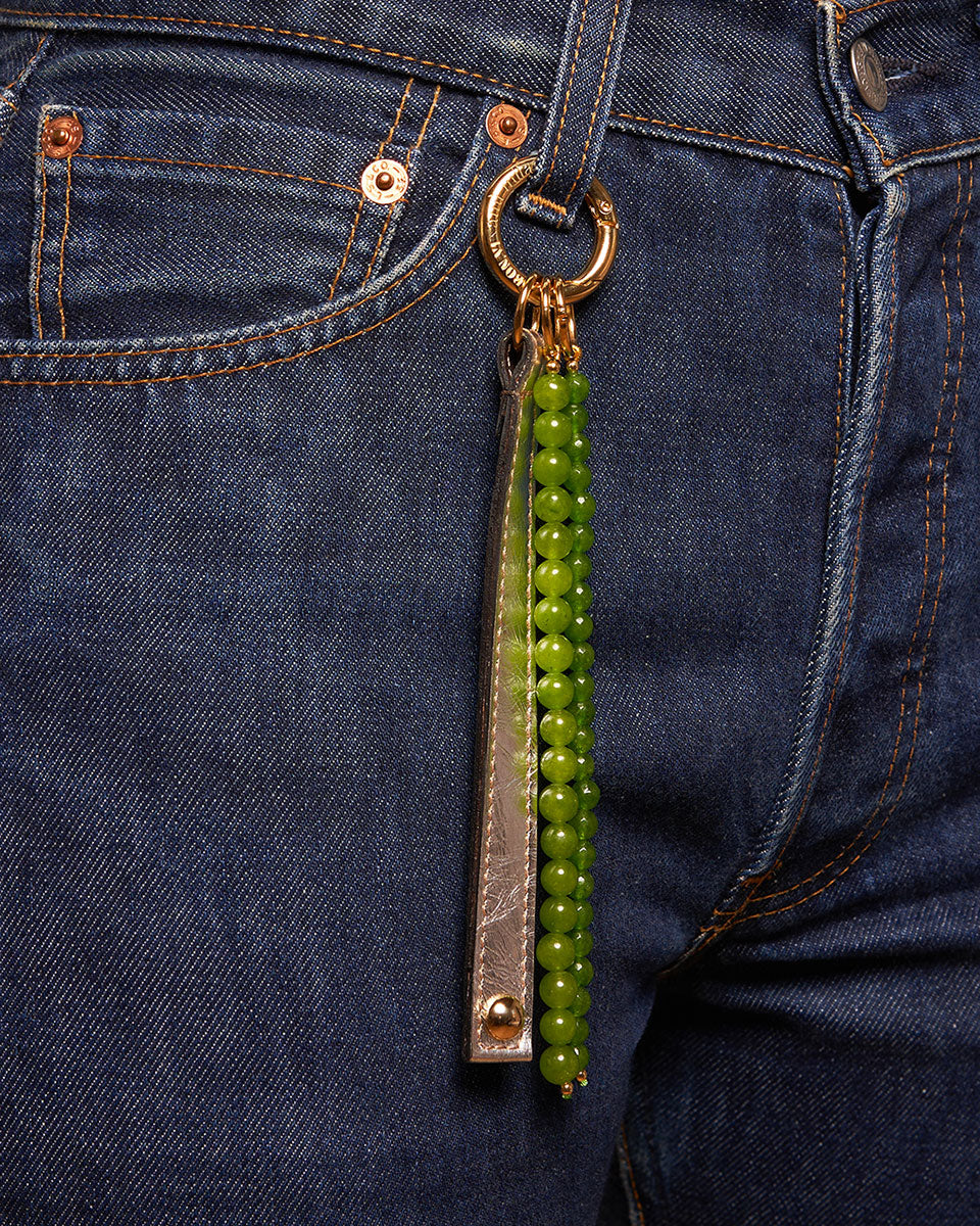 KEYCHAIN STUD PATENT LEATHER GREEN