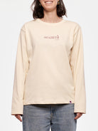 Butter white cotton long-sleeved T-shirt with “Amami come” graphic.
