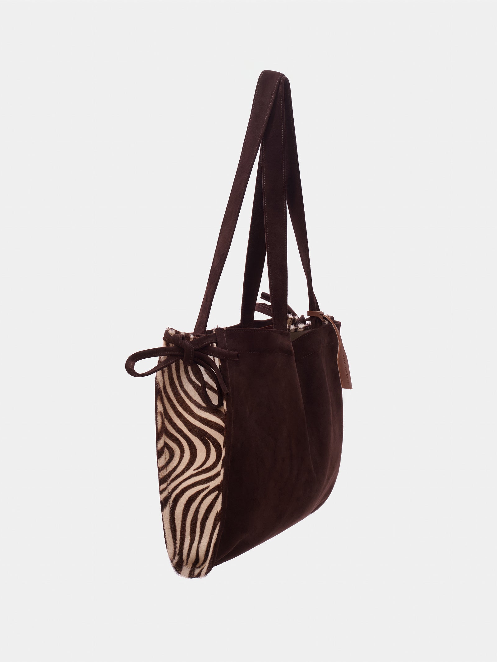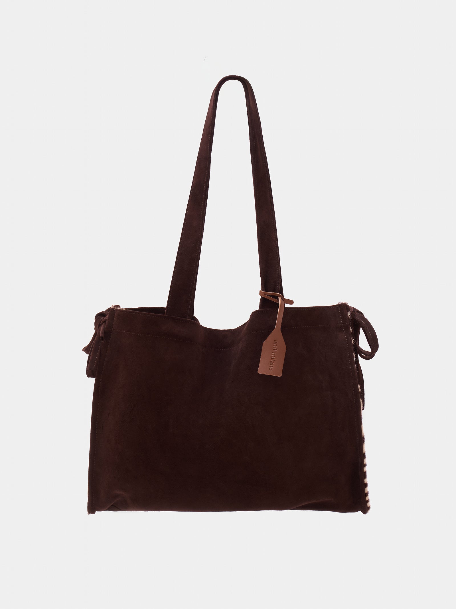 Crafted in suede with upcycled pony hair details, it’s designed for those who seek functionality without compromising on character.