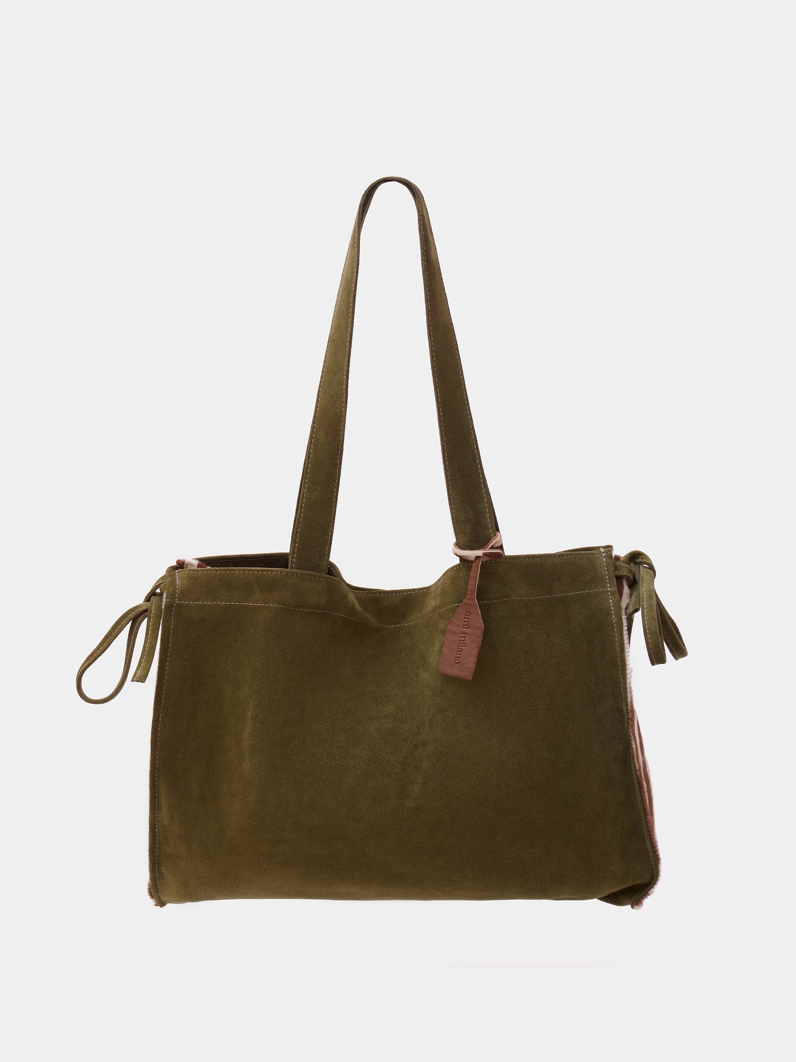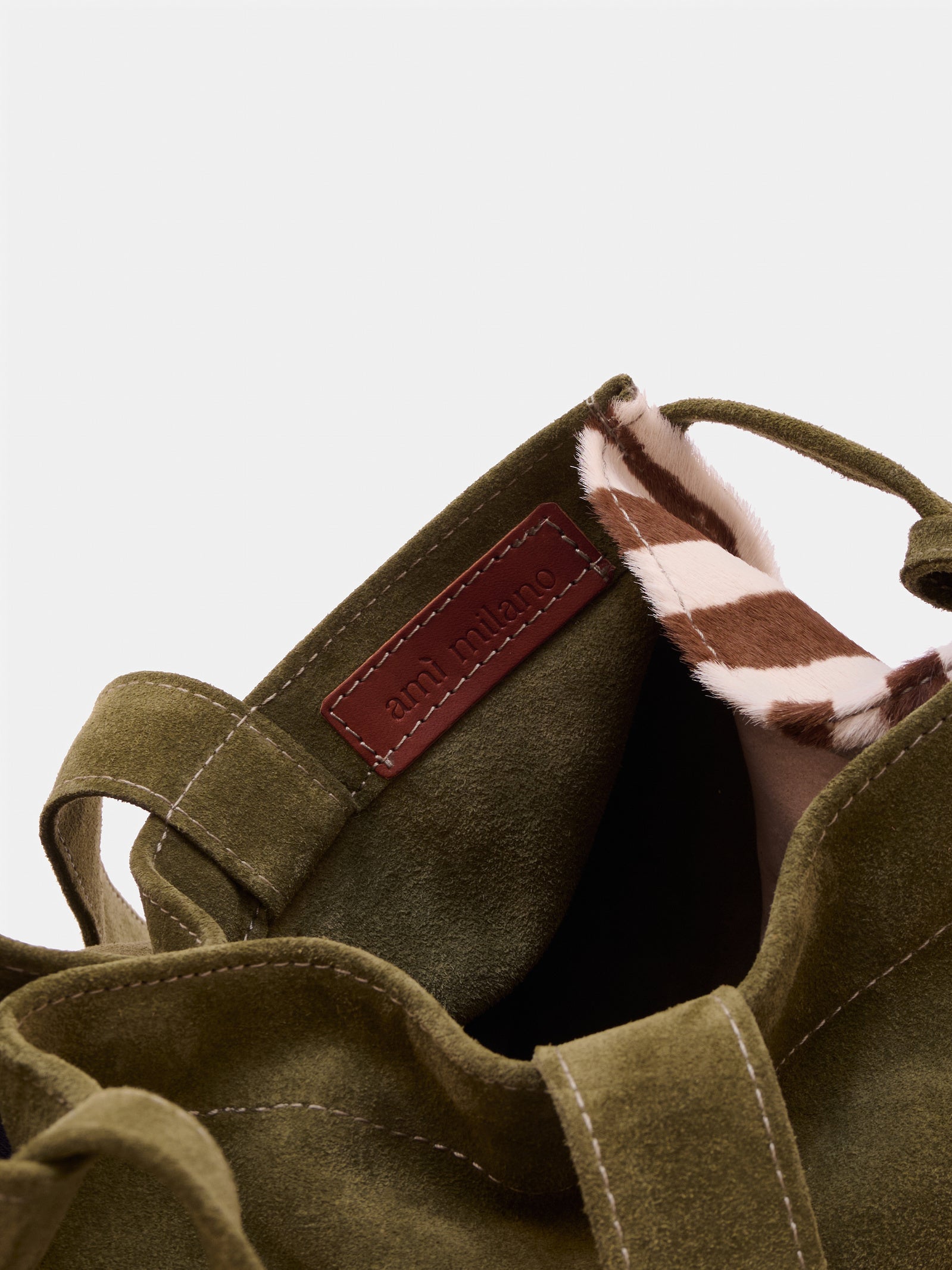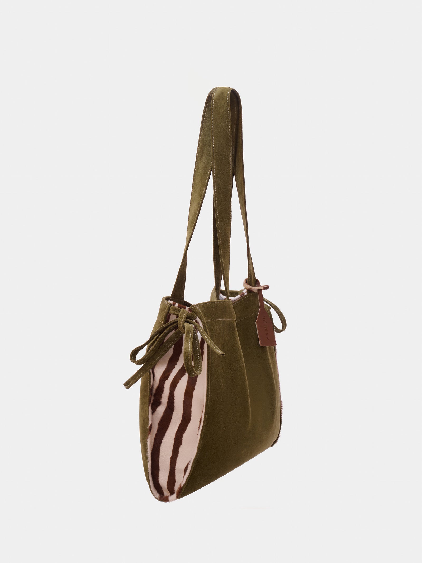 Crafted in suede with upcycled pony hair details, it’s designed for those who seek functionality without compromising on character.