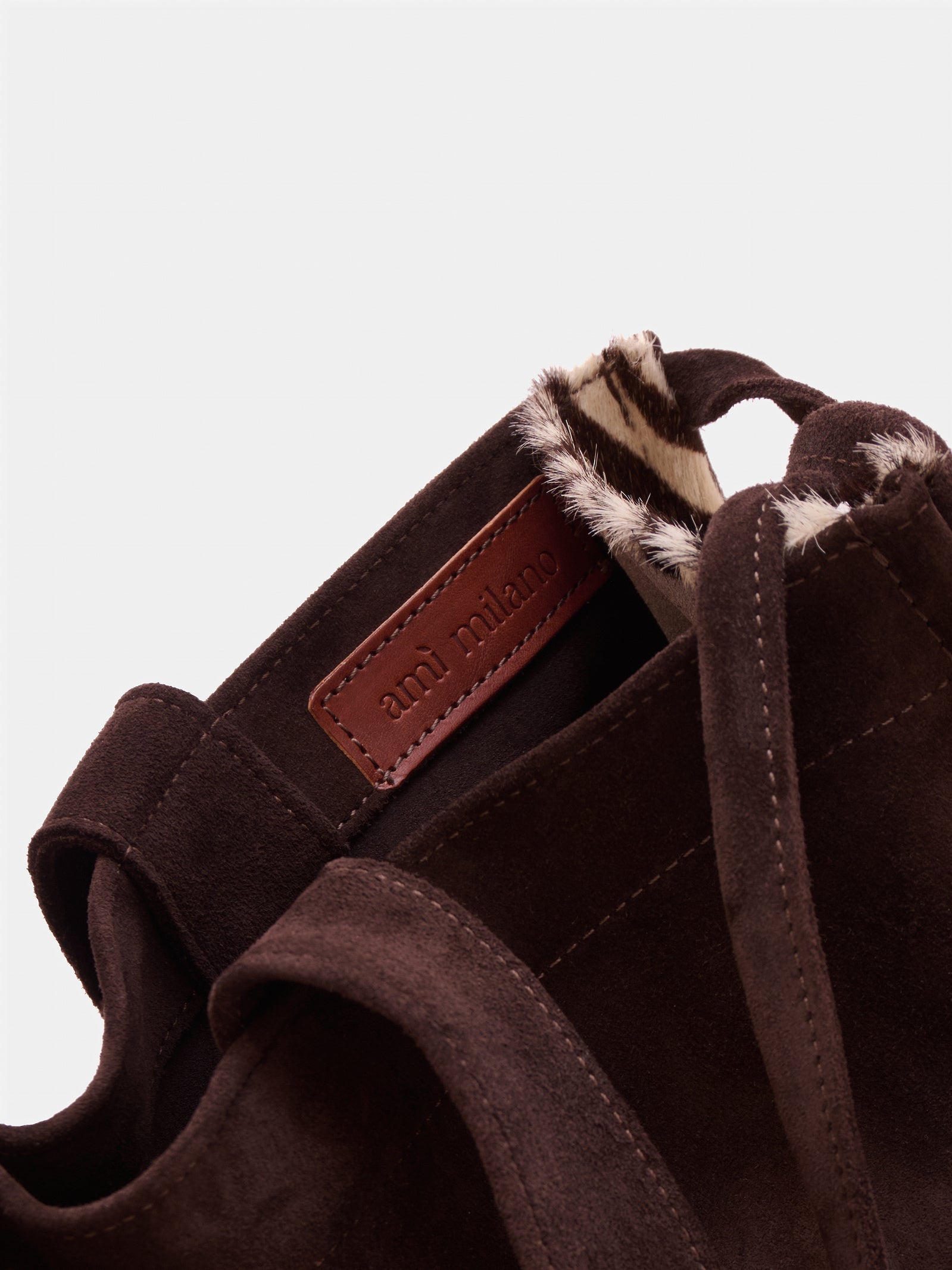Crafted in suede with upcycled pony hair details, it’s designed for those who seek functionality without compromising on character.